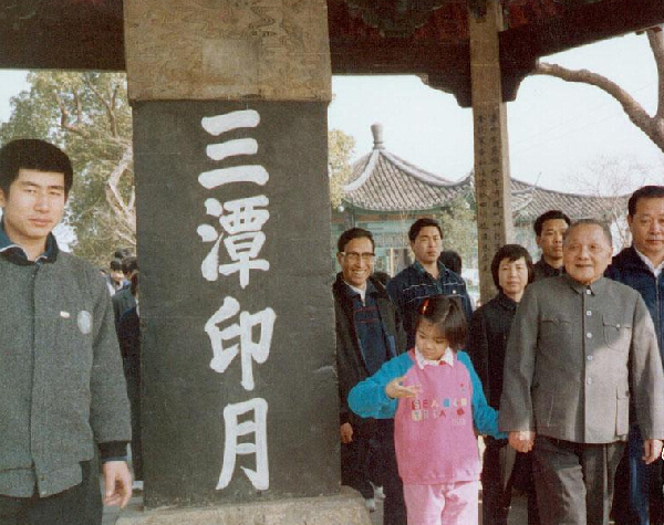 1988年元月,鄧小平在杭州游西湖時留影。