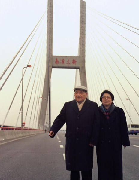 1992年2月,鄧小平同志與夫人卓琳在上海南浦大橋留影。