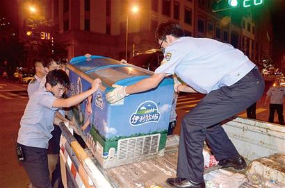 記者發(fā)現(xiàn),不少商店、飯館的經營者迫于這段時間的集中治理,已經不再像以往一樣大張旗鼓地大范圍占道經營,而是改為超出門框一點點,或者將貨物擺放在門口遮陽棚下面。在中山路與湖南路路口附近區(qū)域,存在這種占路行為的商家至少有七八家。一些商家將冰箱、貨架面積的三分之一超出界線,當看到城管來了,馬上往里面移一移,以此蒙混過關。有些貨物被暫扣的店主,還極力阻撓執(zhí)法行為。