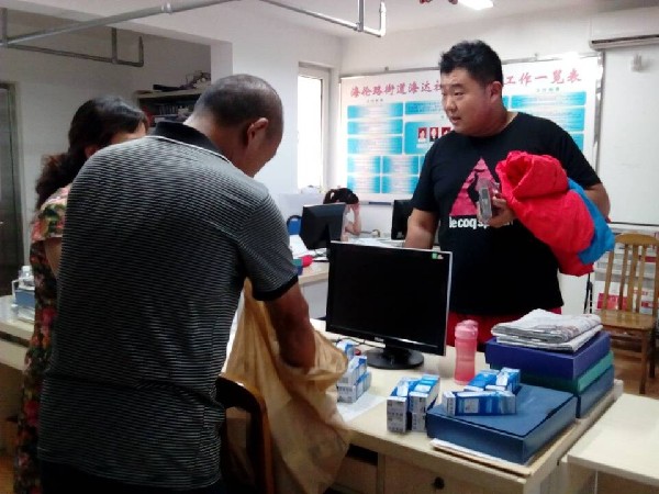 青報(bào)網(wǎng)訊? 8月29日,在海達(dá)社區(qū),工作人員正在為居民發(fā)放半價(jià)節(jié)能燈。