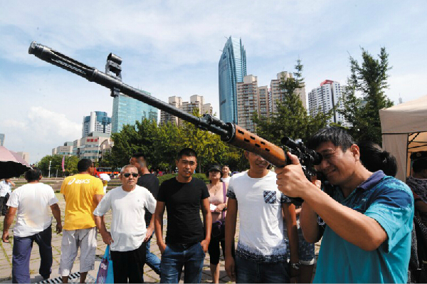 ????“這支狙擊步槍別看比85式的短,但是它是現(xiàn)在世界高精度狙擊步槍俱樂部的一員,來,拿著體驗(yàn)下它的重量。 ”昨天上午10時,我市特警、武警和消防部門將數(shù)十件精良的反恐裝備在五四廣場一字?jǐn)[開,首次公開向市民展示我市的反恐力量和裝備,其中的很多的裝備都是首次展出。記者在現(xiàn)場看到,光槍械便有十幾種之多,其中包括發(fā)射震爆彈的特種槍械等。面對這些以前只能在電視和書籍上看到的槍械,市民們紛紛加入到體驗(yàn)的行列,武警戰(zhàn)士們則一點(diǎn)點(diǎn)地向市民介紹這些槍械的特點(diǎn)。