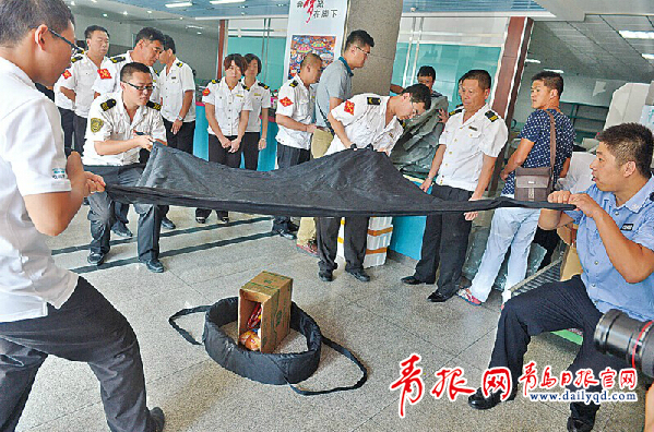 ????交運速遞公司員工在練習使用防爆毯覆蓋爆炸物。中秋節(jié)前,交運速遞的班線快遞和“家家送”接單量激增,為提高員工對危險易燃易爆物品的應急處置能力,交運速遞公司邀請市特警支隊警官為員工普及基本的防恐反恐常識,現(xiàn)場演示防爆桶、防爆毯等特種工具的使用。邢志峰 攝