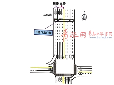 ????山東路敦化路路口交通組織優(yōu)化措施前期已開(kāi)始試運(yùn)行,主要是增加了北進(jìn)口跨線橋下橋口龍門架主輔路信號(hào)燈,車輛可依據(jù)信號(hào)燈放行情況行駛。當(dāng)主路紅燈、輔路綠燈時(shí),輔路車輛可提前進(jìn)入交叉口進(jìn)行排隊(duì),通過(guò)信號(hào)燈控制極大緩解了北進(jìn)口跨線橋下橋車流與輔路車流變道通行時(shí)造成的交織干擾,提高了進(jìn)口通行效率。