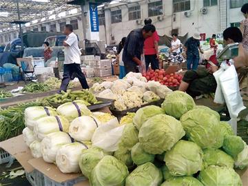 ????9月8日上午,記者來到滄口華中蔬菜批發(fā)市場,只見十余輛成車的白菜已賣了近一半,隨便到零售的攤位上轉(zhuǎn)一圈,幾乎都能看到新鮮的白菜。記者打聽了一下價(jià)格,成袋批發(fā)是7毛錢一斤,如果零售價(jià)格則是1元錢一斤。