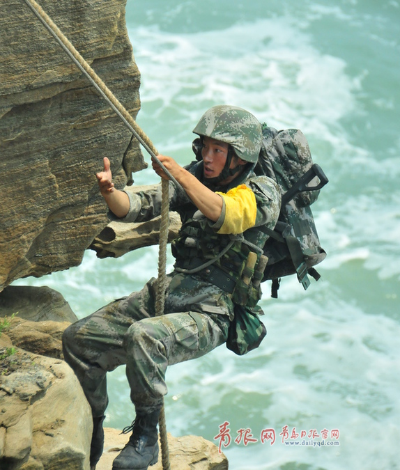 ????訓(xùn)練強(qiáng)度比起電影《沖出亞馬遜》中演繹的魔鬼訓(xùn)練場(chǎng)景也毫不遜色。一周時(shí)間里,兩棲偵察隊(duì)先后組織了渡海登島、海上射擊、武裝泅渡、潛海作業(yè)、武裝攀巖、戰(zhàn)場(chǎng)救護(hù)等課目訓(xùn)練。