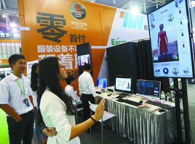 服裝節(jié)展廳里,市民體驗電子選衣設備。 本報記者馮芃攝