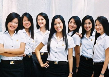 ????泰國在對待學生的著裝上要求相當嚴格,從小學到大學在校都必須穿校服。小學生的校服比較鮮艷明亮,大學校服則比較中規(guī)中矩:女生是白上衣、黑裙子和白球鞋;男生則被要求統(tǒng)一穿穿白上衣、黑褲子、黑皮鞋,必須打領(lǐng)帶或領(lǐng)結(jié)。
