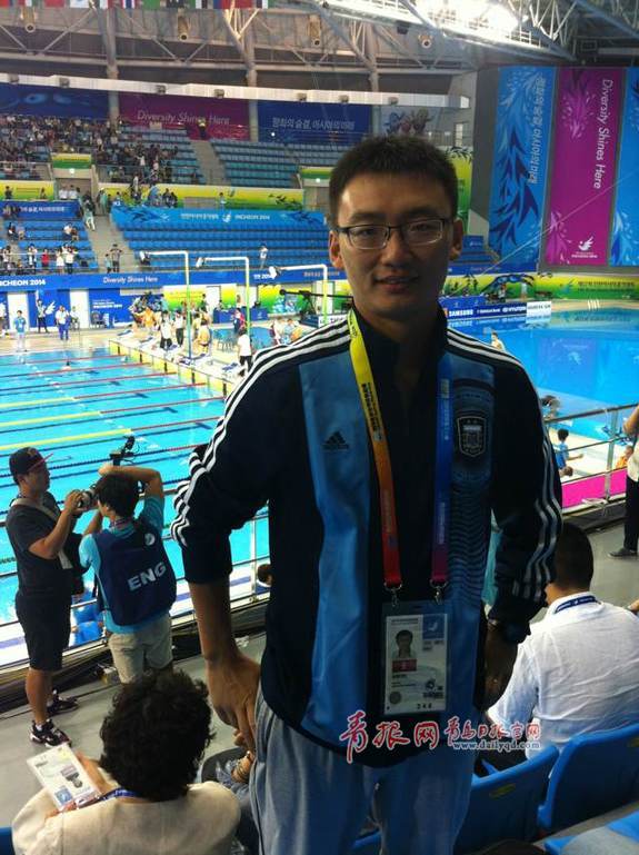 樸泰桓晉級決賽,18時將與孫楊展開巔峰對決,圖為本報記者現(xiàn)場采訪