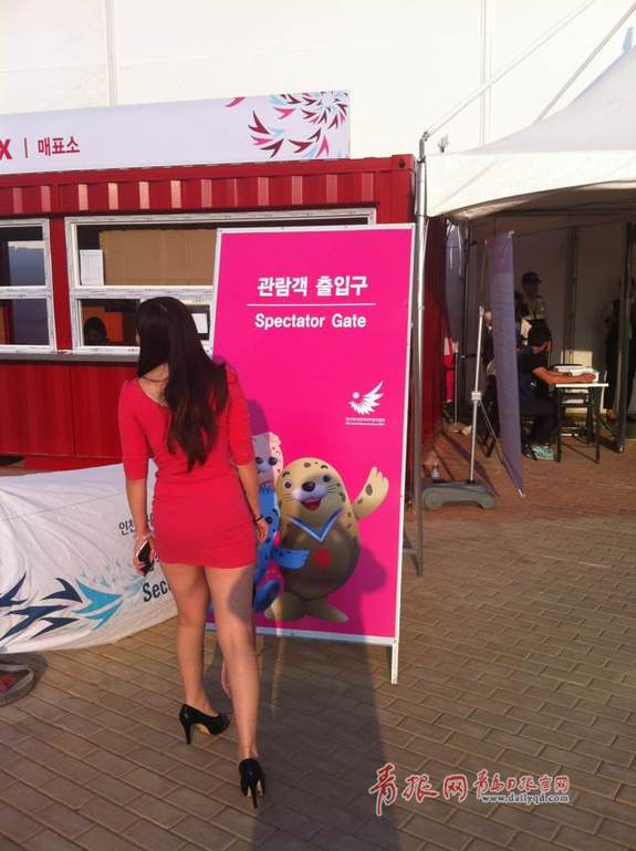 青島美女記者亞運爆紅 身材窈窕引韓國運動員追捧