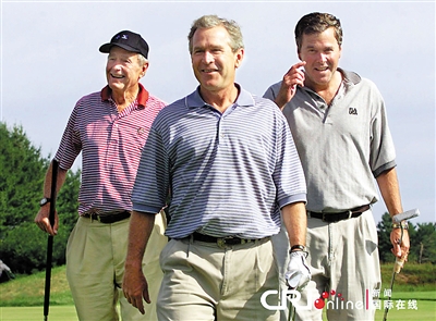 ■小布什(中)與弟弟杰布·布什(右)及父親老布什(左)。資料照片