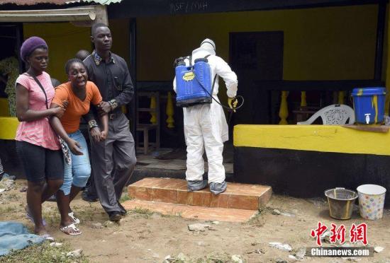 資料圖:當(dāng)?shù)貢r(shí)間2014年10月4日,利比里亞蒙羅維亞,一名女子得知丈夫疑似感染埃博拉病毒,悲痛不已。圖片來源:CFP視覺中國