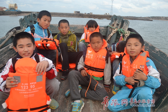 ????天剛微亮,黃島區(qū)瑯琊鎮(zhèn)齋堂島上的一艘木船就拉響了馬達(dá),準(zhǔn)備出發(fā)。與其它漁船不同,這艘船上坐著7名要去對(duì)岸上學(xué)的孩子。