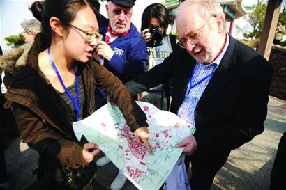 ??? 在訪問(wèn)團(tuán)里,有一名專門研究日德戰(zhàn)爭(zhēng)歷史的學(xué)者——施密特。在兩天的尋蹤中,他認(rèn)為因?yàn)椤袄铣菂^(qū)”的完好保留,讓青島有別于其他現(xiàn)代化城市,具有獨(dú)特的韻味。此次訪問(wèn),施密特還特意帶來(lái)了一張德國(guó)當(dāng)?shù)貓D書(shū)館借出的1911年的青島地圖,時(shí)隔一百多年,這張地圖因歷史感和厚重感而具有深刻意義。