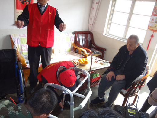 青報網(wǎng)訊? 11月8日,青島日報“愛心陪伴空巢老人”送輪椅活動在興城路街道板橋坊社區(qū)拉開序幕。上午9點,板橋坊社區(qū)“彩虹”志愿服務隊及青島邊防支隊李滄機動中隊警馨志愿服務隊的志愿者們?yōu)樯鐓^(qū)困難殘疾人史永勝和呂錫明送去了輪椅和助行器。史永勝和呂錫明患有肢體2級殘疾,行走困難,由于沒有輪椅,平時起居和出行極為不便。了解到他們的情況后,社區(qū)工作人員第一時間向青島日報“愛心陪伴空巢老人”團隊申請輪椅和助行器,經(jīng)過大家共同努力,兩輛嶄新的輪椅送到了他們家中。志愿者為他們安裝好輪椅后,還詳細講解了輪椅的用法。史永勝和呂錫明及其家人對對志愿者們的愛心行動一再表示感謝。