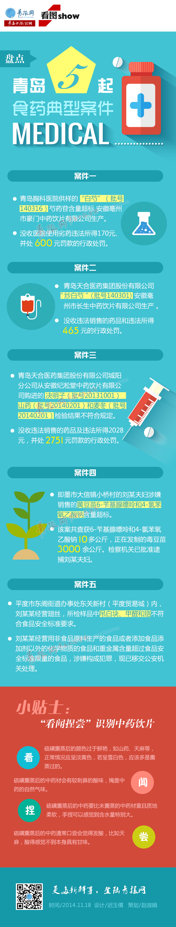 青島5起食藥典型案件曝光 3人移送司法部門處理