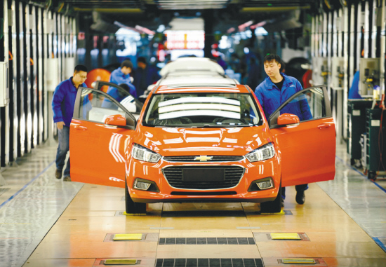????11月19日,在上海通用(沈陽)北盛汽車有限公司雪佛蘭全新一代科魯茲生產(chǎn)線上,工人們正在緊張工作。前十個(gè)月,該廠整車產(chǎn)量達(dá)32.9萬輛,同比增長17%。記者張文魁 實(shí)習(xí)生 安呈浩攝
