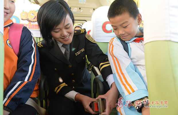 ????青島日?qǐng)?bào)/青報(bào)網(wǎng)訊 高佳慧是溫馨校車的一名隨車照管員,從2012大學(xué)畢業(yè)起一直服務(wù)于嶗山寧真希望小學(xué)。她曾經(jīng)在這所希望小學(xué)讀書,如今回到母校為小學(xué)生服務(wù)讓她感到分外親切。