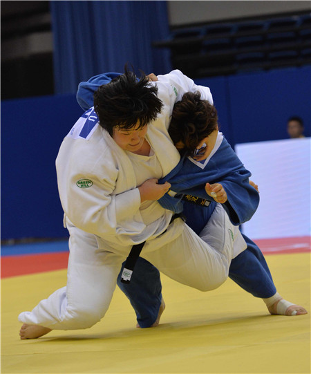??? 泰山地產(chǎn)Q1杯”2014年世界柔道大獎賽(中國站),今天在青島體育中心國信體育館進行最后一天的賽事,中午,世界柔道名將中國(青島籍)的于松在女子+78公斤級的比賽中戰(zhàn)勝日本選手,進入今晚的決賽。周光輝攝