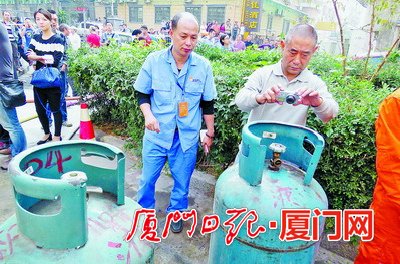 華潤燃氣工作人員在現(xiàn)場對搬出來的煤氣瓶進行拍照,協(xié)助調(diào)查。