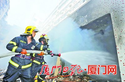 ????不到5分鐘,轄區(qū)消防官兵先趕到,增援的隊伍隨后也陸續(xù)趕到。此時,惠豪大廈的倉庫火勢兇猛,墻上、地上燒得一團黑,已經(jīng)無法辨別原先模樣。救援人員戴著呼吸空氣器,有的滅火,有的鉆進南側(cè)的27號店面搜尋救人,附近生鮮蔬菜店的老板李杭和一群熱心人,方才退出廢墟狀的店鋪。