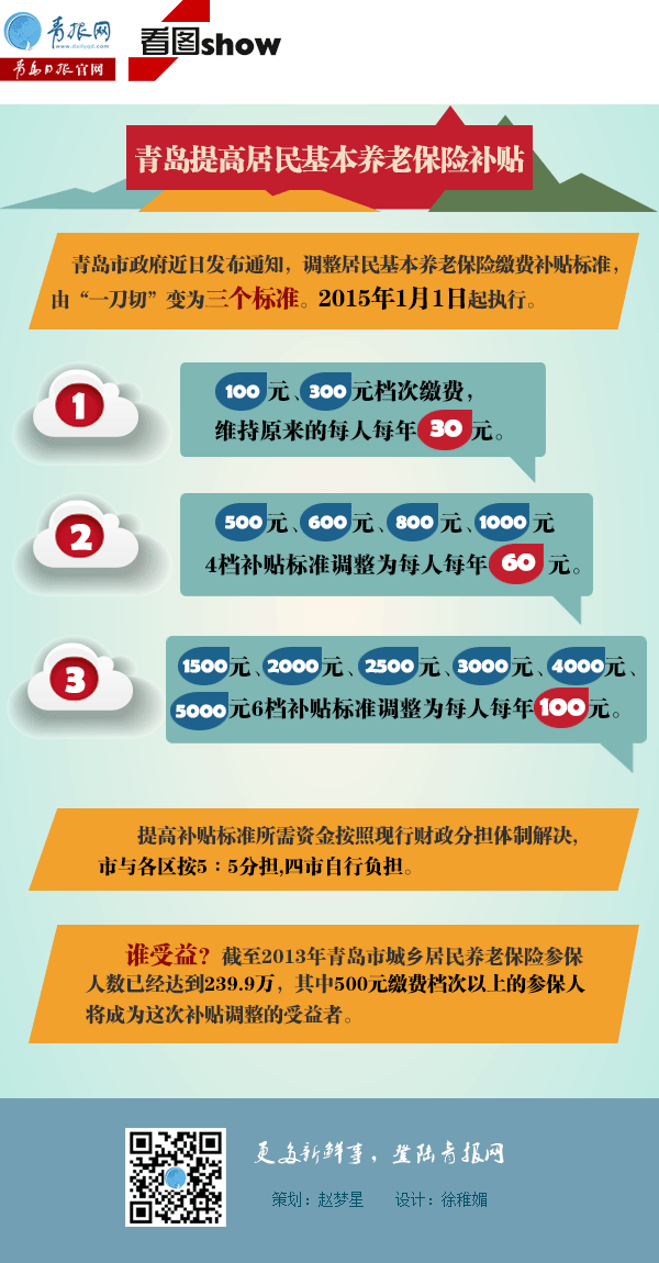 青島居民養(yǎng)老保險參保補貼調(diào)整:500元及以上補貼提高