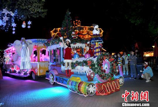 廣州長隆歡樂世界6日晚舉行圣誕花車大巡游,正式開啟長達(dá)兩個(gè)多月的“午后場(chǎng)”跨年秀活動(dòng)。 劉衛(wèi)勇 攝