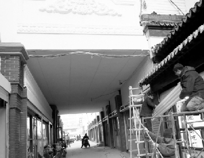 ????胡同文化是沈河區(qū)皇城地區(qū)的特有資源,展現(xiàn)了獨(dú)有的文化底蘊(yùn)。其中,已具備特色胡同雛形的官局子(現(xiàn)金利來(lái)胡同)、孫祖廟胡同(現(xiàn)長(zhǎng)江照相館胡同)、頭條胡同(現(xiàn)沈陽(yáng)第二百貨胡同)等3條胡同,正在實(shí)施文化提升工程。記者在現(xiàn)場(chǎng)看到:改造中,3條胡同里原有的牌匾、土建門(mén)窗及卷簾門(mén)全部進(jìn)行了更換。原來(lái)的建筑物外墻面新鋪裝了灰色仿古磚,有的建筑物二層墻面噴刷了新涂料。而胡同里的店面也進(jìn)行了仿古改造。