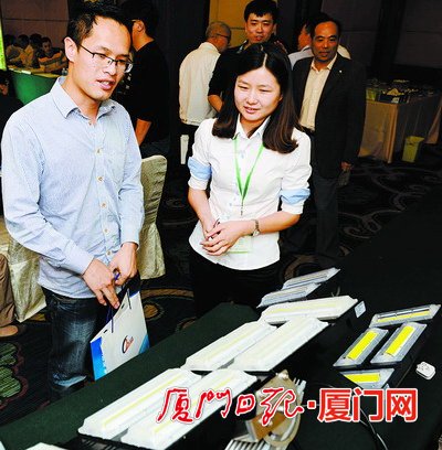 2014廈門LED照明產(chǎn)業(yè)鏈對接會上,企業(yè)展示新產(chǎn)品。(本報(bào)記者 黃曉珍 攝)