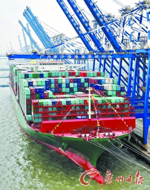 航運(yùn)行內(nèi)人士認(rèn)為,全球最大集裝箱船“中海環(huán)球”號(hào)首航南沙,意義非凡,充分體現(xiàn)廣州港南沙港區(qū)在全球集裝箱運(yùn)輸格局中的重要地位。南沙港區(qū)已成為為數(shù)不多能靠泊世界最大集裝箱船的碼頭之一。