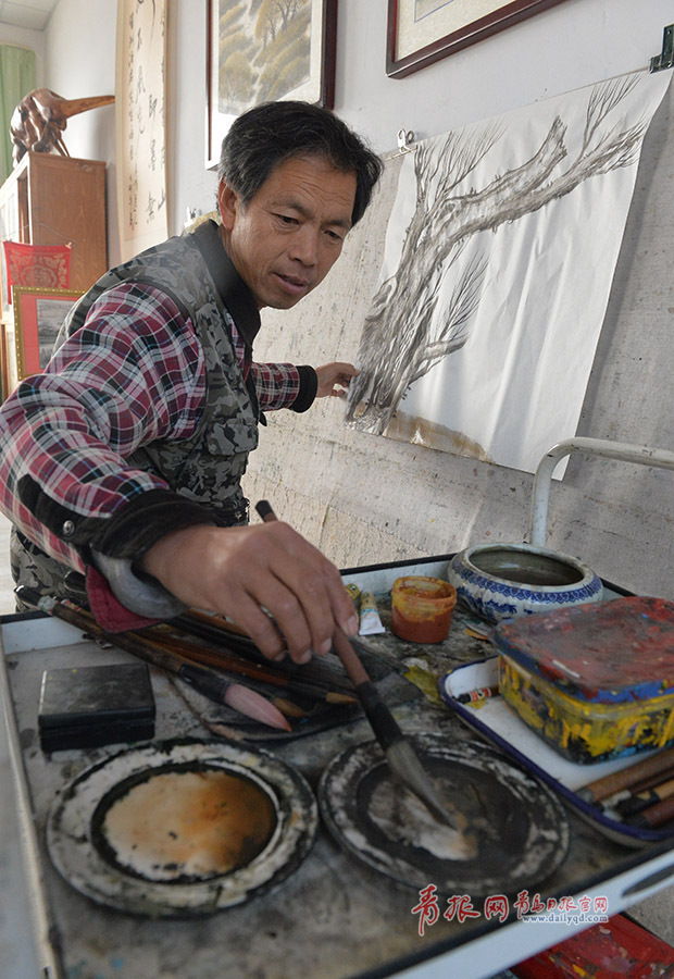 ????2002年,劉澤君做出了一個(gè)大膽的計(jì)劃,要徒步走完大沽河,用相機(jī)和畫筆來記錄大沽河沿岸的美景。于是他一路北上,穿過萊西,來到大沽河在招遠(yuǎn)的源頭。用了半個(gè)多月時(shí)間,走完了大沽河全程,相機(jī)的膠卷用掉了十多個(gè),回到家后他又用畫筆一點(diǎn)點(diǎn)描繪。
