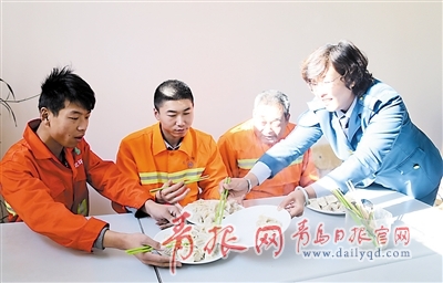一起過(guò)冬至 青島交運(yùn)汽車站為環(huán)衛(wèi)工人送餃子