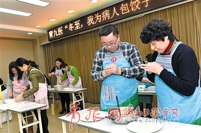 ????■青島市第九人民醫(yī)院醫(yī)護(hù)人員一起為病人包餃子,并將餃子送到住院病人床前,祝愿他們?cè)缛湛祻?fù)?;颊邆兤穱L著醫(yī)護(hù)人員們親手包的餃子,吃在嘴里,暖在心里。