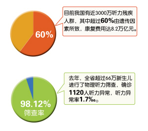 ????我國現(xiàn)有聽力殘疾的人群近3000萬,其中超過60%由遺傳因素所致,康復(fù)總費(fèi)用達(dá)8.2萬億元。