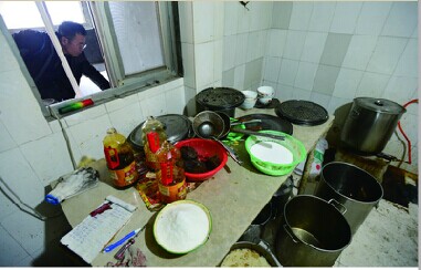 借口離開作坊后,記者將了解到的情況反映給平度市食品藥品監(jiān)督管理局,約半個小時后執(zhí)法人員來到現(xiàn)場突擊檢查。執(zhí)法人員的到來讓作坊老板明顯有些慌亂,檢查過程中執(zhí)法人員發(fā)現(xiàn)除了該作坊除了燉煮豬蹄外,還加工肉脂渣等其它肉食品,對此作坊老板辯稱肉脂渣只是“實驗”制作,并沒有大量生產(chǎn)投入市場,不過對于自己煮豬蹄大量對外銷售的事實作坊老板并未否認。除了環(huán)境惡劣不符合加工食品基本要求外,執(zhí)法人員發(fā)現(xiàn)作坊老板提供不出相關(guān)證件,唯一一個流通許可證也是地址不符,另外工人們的健康證也均已過期,屬于無證經(jīng)營。數(shù)罪并罰,目前這處加工肉食的作坊已經(jīng)被平度食品藥品監(jiān)督管理局依法責(zé)令停產(chǎn),等待進一步調(diào)查處理。(記者 王曉先 于滈 攝影報道)