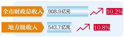 2014年,我市財政總收入突破900億元,連續(xù)3年跨越3個百億大關。