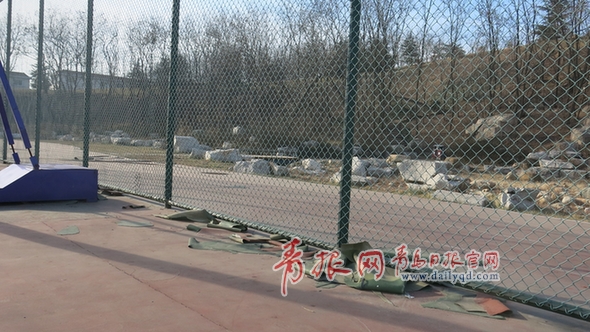 ????接到居民熱線,記者來到位于銀川西路的浮山香苑。根據(jù)介紹,浮山香苑是一個集市民觀光旅游、登山健身和休閑運動為一體的、充分體現(xiàn)嗅覺文化特色的開放式公園,整個園區(qū)將以“一環(huán)七景十二香園”為框架,形成園中園的結(jié)構(gòu)。在現(xiàn)場,記者看到,迎門而建的是體育健身區(qū),跑道及硅PU籃球場已經(jīng)破爛不堪,殘損的材料廢棄在球場及周邊草坪,因為冬季,草木不發(fā),整個園區(qū)也略顯荒涼。