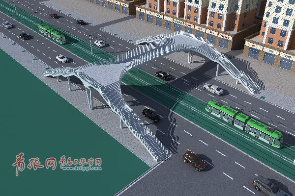 ????此外,青島農(nóng)業(yè)大學(xué)門口路段是有軌電車整條運(yùn)營線路中,人口最為密集的區(qū)域,為了保障市民的過街安全,將在此處建設(shè)一條過街天橋。過街天橋已經(jīng)設(shè)計(jì)完畢,現(xiàn)在已經(jīng)開始過街天橋的基礎(chǔ)工程開始動(dòng)工。從效果圖上看,在建的過街天橋高出軌道電網(wǎng)、橫跨馬路兩側(cè),其外形、材質(zhì)真是高大上,天橋整體構(gòu)造采用鋼化材質(zhì),頂部非常寬敞,有四個(gè)上下出口,樓梯的坡度很小且有兩個(gè)休息平臺。