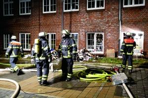 1月11日,在德國北部城市漢堡,消防員聚集在《漢堡晨郵報(bào)》報(bào)社的火災(zāi)現(xiàn)場(chǎng)。新華社發(fā)