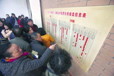 ????日前,漢陽(yáng)區(qū)惠民苑公租房開(kāi)始配租,首批獲得資格的市民選擇房型和樓層 (陳卓攝)