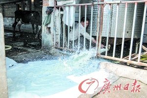 近日,南沙區(qū)欖核鎮(zhèn)的一家散戶奶牛場因至今仍未找到接收牛奶的奶制品公司,因此隔兩天就要把產(chǎn)出的牛奶倒掉。 CFP供圖
