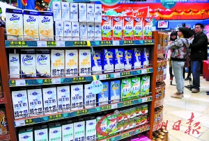 廣州某超市內(nèi)的進(jìn)口牛奶。 廣州日?qǐng)?bào)記者王燕 攝