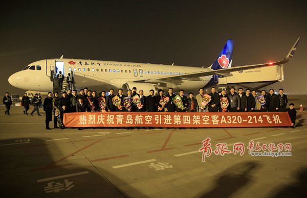 ????1月15日下午18:45時(shí),一架全新A320飛機(jī)由法國圖盧茲順利飛抵青島流亭國際機(jī)場(chǎng),標(biāo)志著第四架飛機(jī)正式加盟青島航空,這是青島航空2015年引進(jìn)的第一架全新空客A320飛機(jī),預(yù)計(jì)2015年底公司機(jī)隊(duì)規(guī)模將達(dá)到9架。