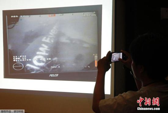當(dāng)?shù)貢r(shí)間2015年1月14日,印尼雅加達(dá),印尼國(guó)家搜救隊(duì)召開(kāi)新聞發(fā)布會(huì),展示新加坡海軍提供的亞航QZ8501航班機(jī)身圖像。