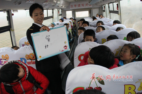 ????為了利用校車途中短短的20分鐘時間,讓同學(xué)們體驗校車的溫馨,并學(xué)到更多的知識,交運萊西分公司河頭店校車班照管員周玲利用業(yè)余時間收集《三字經(jīng)》、《治家格言》、《千字文》等道德經(jīng)典里的漢字,每天學(xué)習(xí)10分鐘生字,進(jìn)行10分鐘比賽,引導(dǎo)中小學(xué)生讀寫國學(xué)經(jīng)典。,校車公司將開展車廂內(nèi)漢字讀寫大賽列為校車“溫馨20分”的新內(nèi)容,逐步在萊西市208部校車上全部開展。