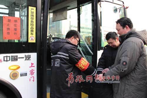 自1月18日起至春節(jié)前夕,溫馨巴士要求駕乘人員增強安全意識,重點觀察可疑人員,并組織100余名稽查人員成立40支稽查分隊展開嚴格的“三品”監(jiān)督檢查。特別是經(jīng)過島城沙子口大集、王哥莊大集、李村大集的605路、606路、610路等線路及途經(jīng)汽車北站、李村集商圈的605路、606路、608路,途經(jīng)青島北站的臨1、臨2、603路,途經(jīng)四方長途站、汽車東站的607路、223路等線路及隧道3路、隧道4路、隧道7路、隧道8路等20余條線路的主要站點將是此次檢查的重點。