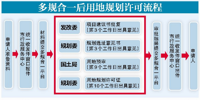 ????多規(guī)合一后,“跑部門”變成了平臺(tái)上的部門內(nèi)部協(xié)調(diào),審批效率自然大幅度提升——據(jù)統(tǒng)計(jì),用地審批從過去的53個(gè)工作日縮短至10個(gè)工作日。張曉宏介紹說,建設(shè)單位只需提前準(zhǔn)備好材料,提交到市行政服務(wù)中心統(tǒng)一收發(fā)件窗口,隨后材料就會(huì)匯總到“多規(guī)合一”平臺(tái)。各有關(guān)單位在平臺(tái)上并聯(lián)審批,共同協(xié)商,最后審批結(jié)果也將匯總到平臺(tái)。建設(shè)單位只要在第10個(gè)工作日到市行政服務(wù)中心統(tǒng)一收發(fā)件窗口領(lǐng)取結(jié)果即可。