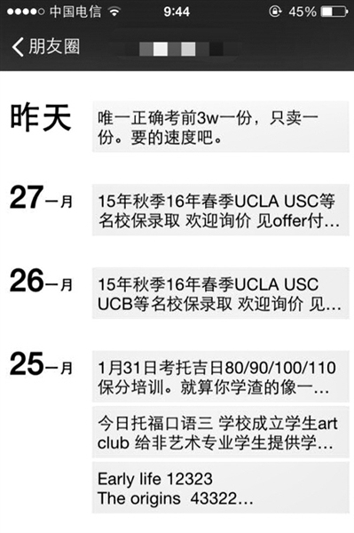 有考生在朋友圈頻繁接到“托福真題”廣告,一份高達(dá)3萬元。