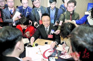 ????明星政協(xié)委員韓志鵬來了!“嘩”的一聲,許多媒體迅速“補位”長槍短炮對準他:“韓委員,今年走幾個部門?”10個!這是韓志鵬給出的答案。昨日,他輪番向市物價局、市交委、市民政局等挨個發(fā)問,部分部門甚至一口氣提兩個問題,致使問到12時知情問政活動接近尾聲,他才去到最后一個部門,討了一瓶水一口氣喝完,“口水都講干了!”他對自己這次問政,政府部門的回應給出了80分滿意度。