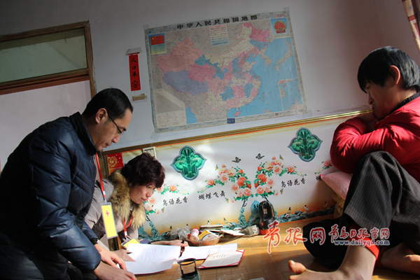 黃島紅十字會人員上門為腦癱姐妹徐大秀、徐研玲辦理捐獻(xiàn)登記手續(xù)。