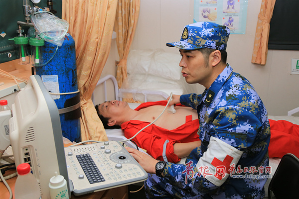 ????與此同時,護航編隊派出4名醫(yī)護人員攜帶心電圖機、便攜式超聲儀等設備和遠海常見病所需的藥品,乘坐小艇登上“新赤灣”輪進行醫(yī)療巡診。這個醫(yī)療小組由隨艦的第二軍醫(yī)大學專家組成,包括內科、口腔科和特診科醫(yī)生,在為22名船員逐一進行細致的身體檢查后,對身體指標異常的船員進行了診療,還留下了一批藥品,并對船員今后的遠航生活提出了健康建議。